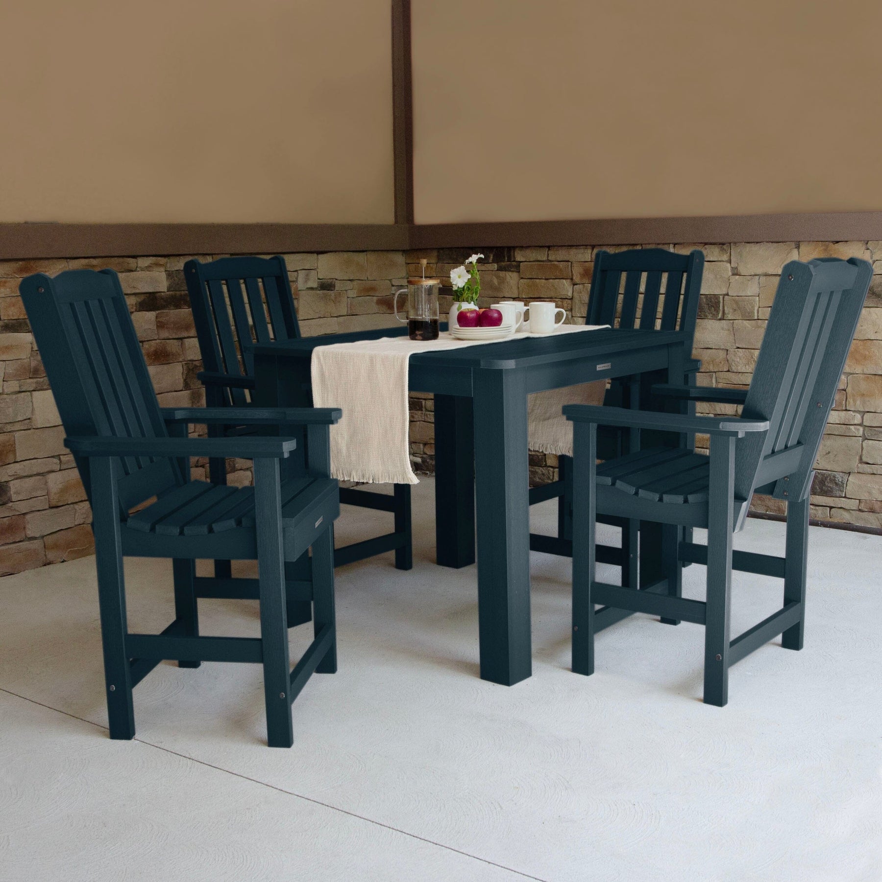 Highwood’s outdoor dining sets are 100% made in the USA, so you can truly host an all-American barbeque. Your family and friends will love this comfy and beautiful design, and since it's made from high-grade poly lumber, we guarantee it will last for years.