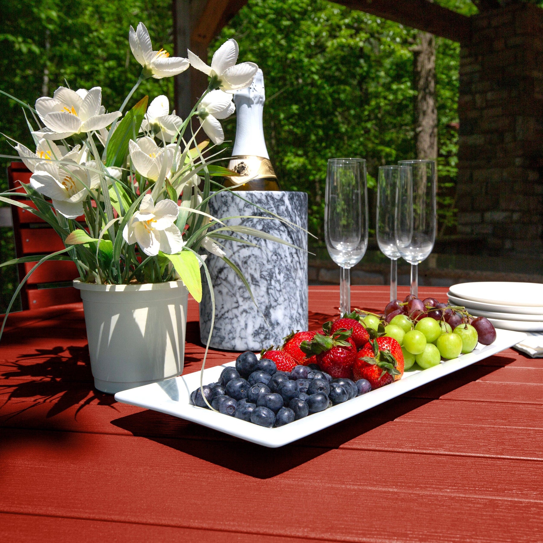 Highwood’s outdoor dining sets are 100% made in the USA, so you can truly host an all-American barbeque. Your family and friends will love the comfy and beautiful design, and since it’s made from high-grade poly lumber, it will last for years.