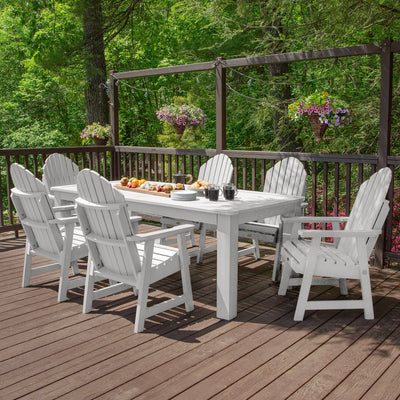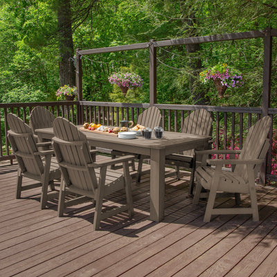 Features a 42" x 84" rectangular dining table plus 6 skillfully crafted Adirondack dining chairs.