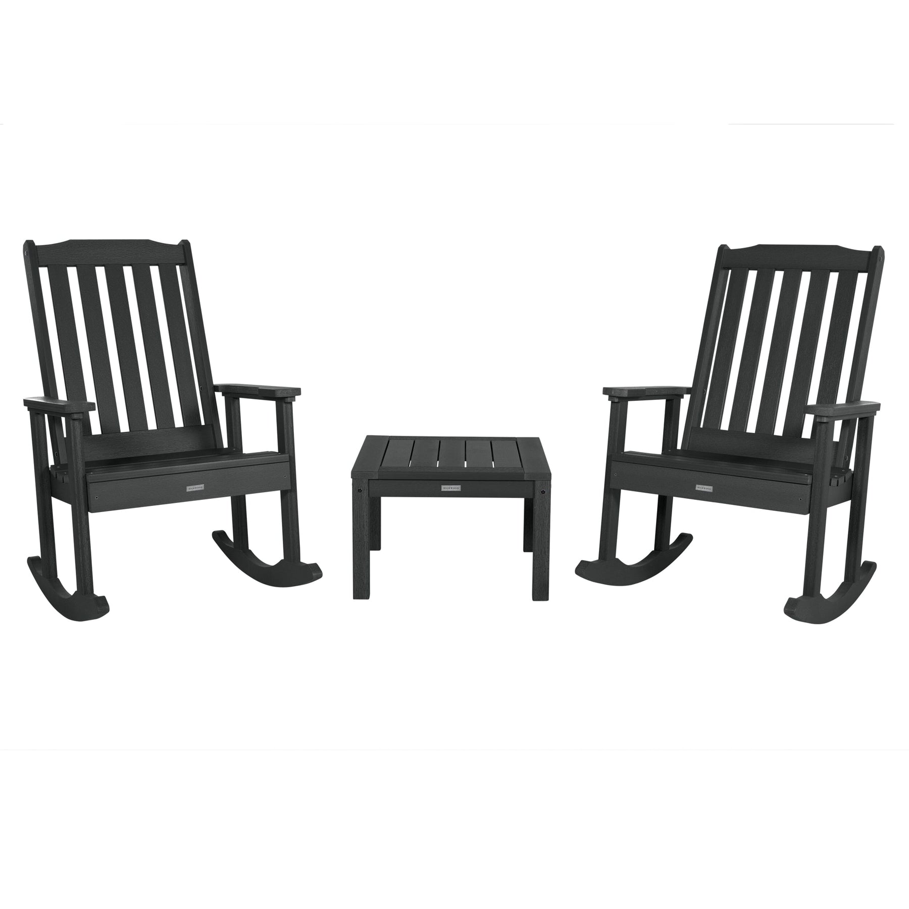 2 Lehigh Rocking Chairs with Adirondack Side Table Kitted Sets Highwood USA Black