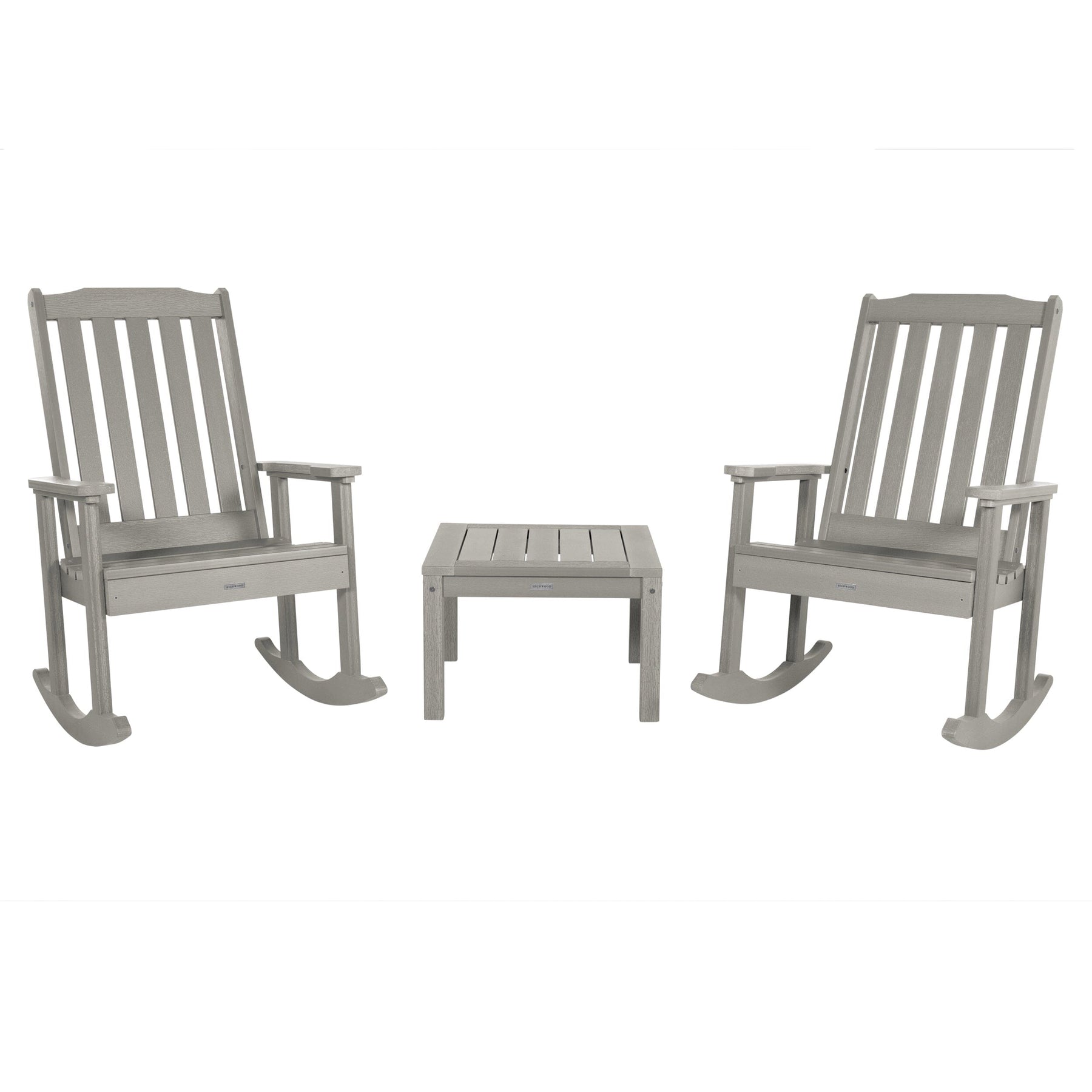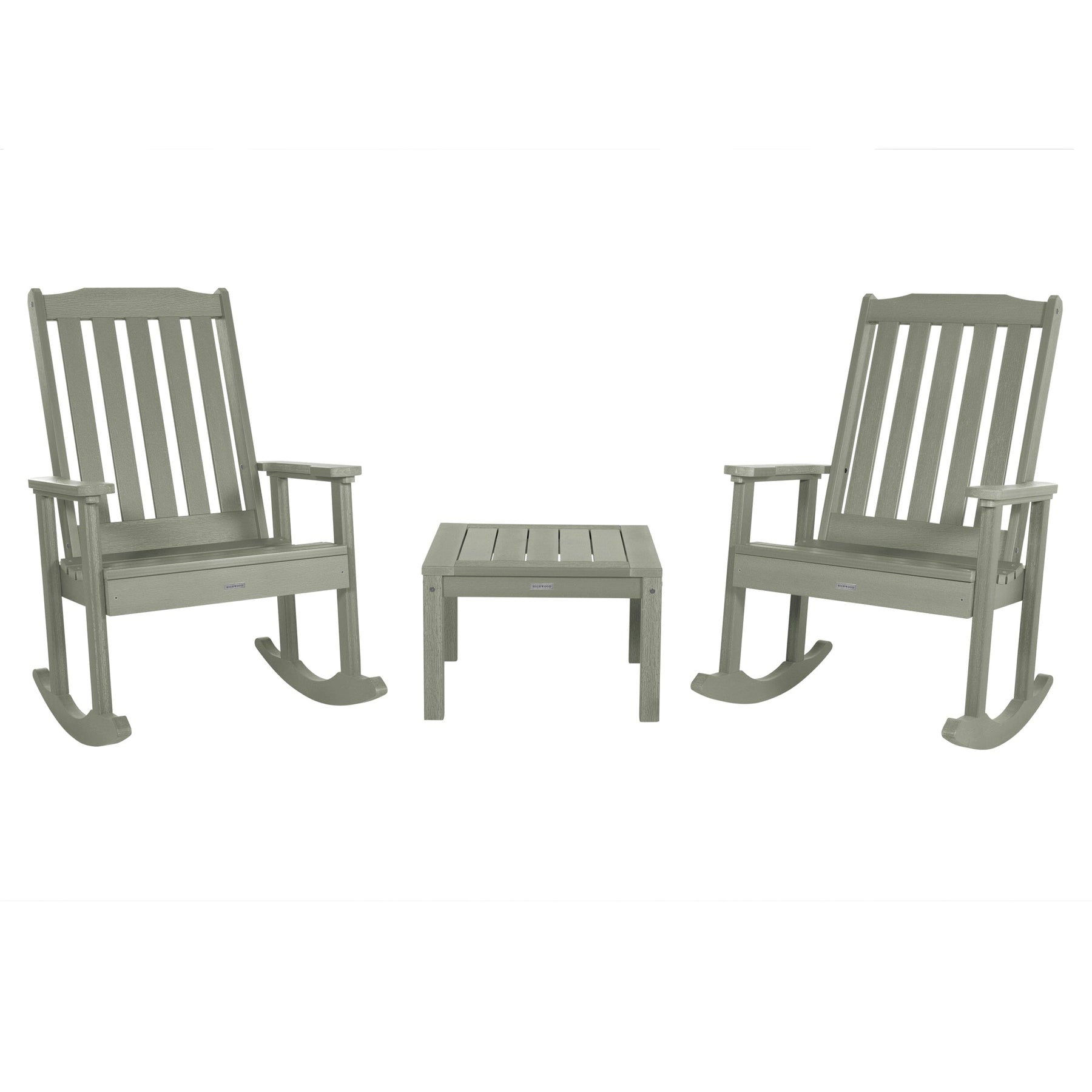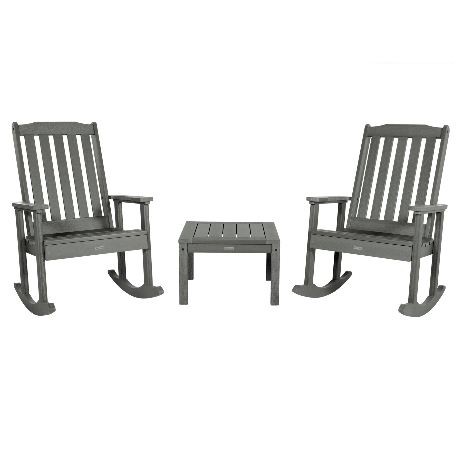 2 Lehigh Rocking Chairs with Adirondack Side Table Kitted Sets Highwood USA Harbor Gray