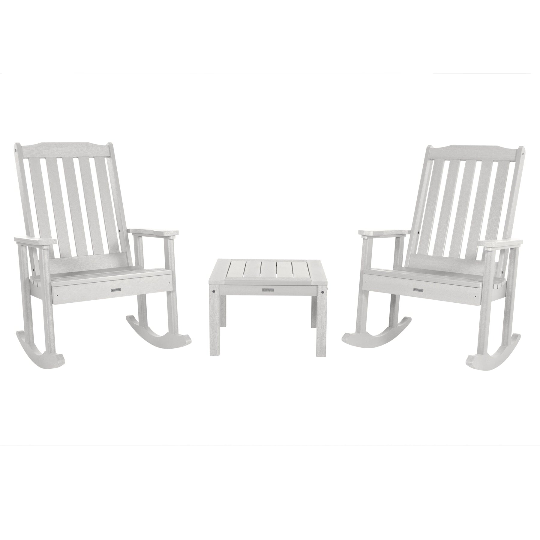 2 Lehigh Rocking Chairs with Adirondack Side Table Kitted Sets Highwood USA White