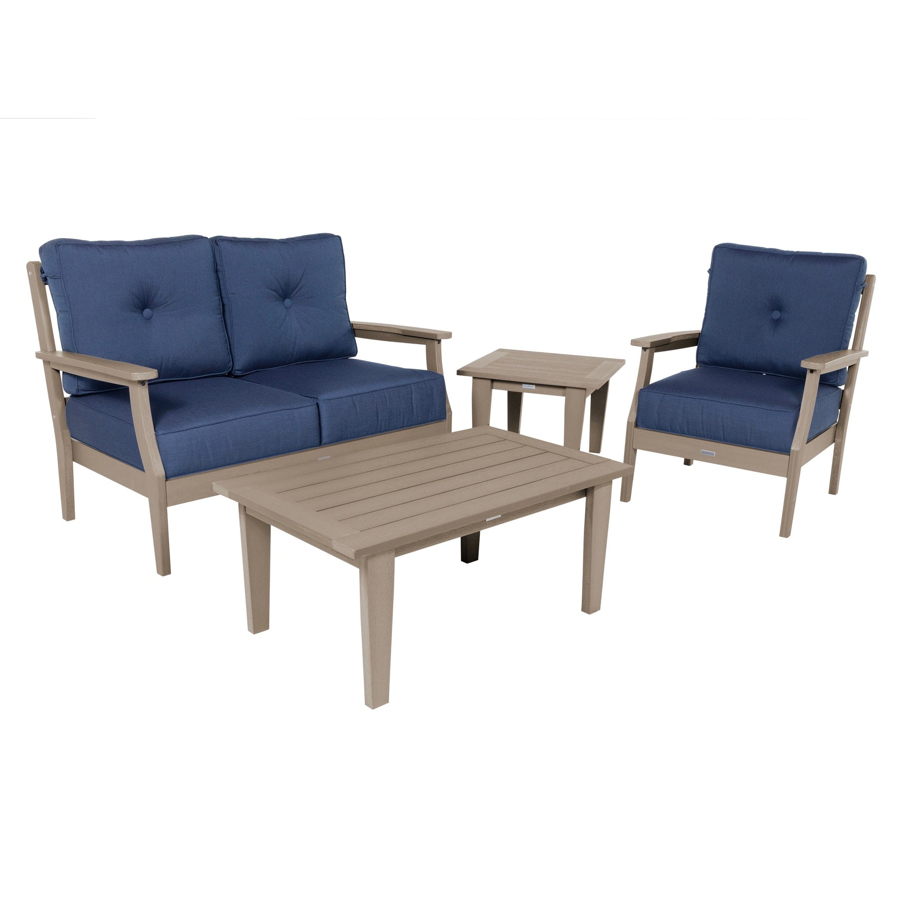 Lehigh Deep Seating 4 Piece Loveseat and Chair Set Deep Seating Highwood USA Spectrum Indigo Whitewash