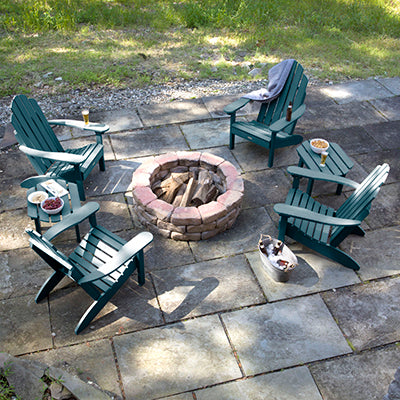 For extra convenience, Highwood offers combined fire pit sets with Adirondack-style accessories that match with our chairs. Pick up a circle of chairs plus a couple of tables to hold your s’more making supplies while you enjoy an evening with loved ones. Add Adirondack-style ottomans to the arrangement so you can put your feet up while you enjoy the stars.