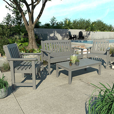 Each yard is unique, so we've designed a couple different collection styles for our outdoor bench conversation sets. The Lehigh collection projects an elegant feel that adds sophistication to any space. The bench and chairs also feature contoured seats, providing full-scale comfort. Our Westport collection is inspired by harbor towns and lighthouses, and sports Adirondack-style furniture. Both of these designs are perfect for a classically styled conversation set in your yard.