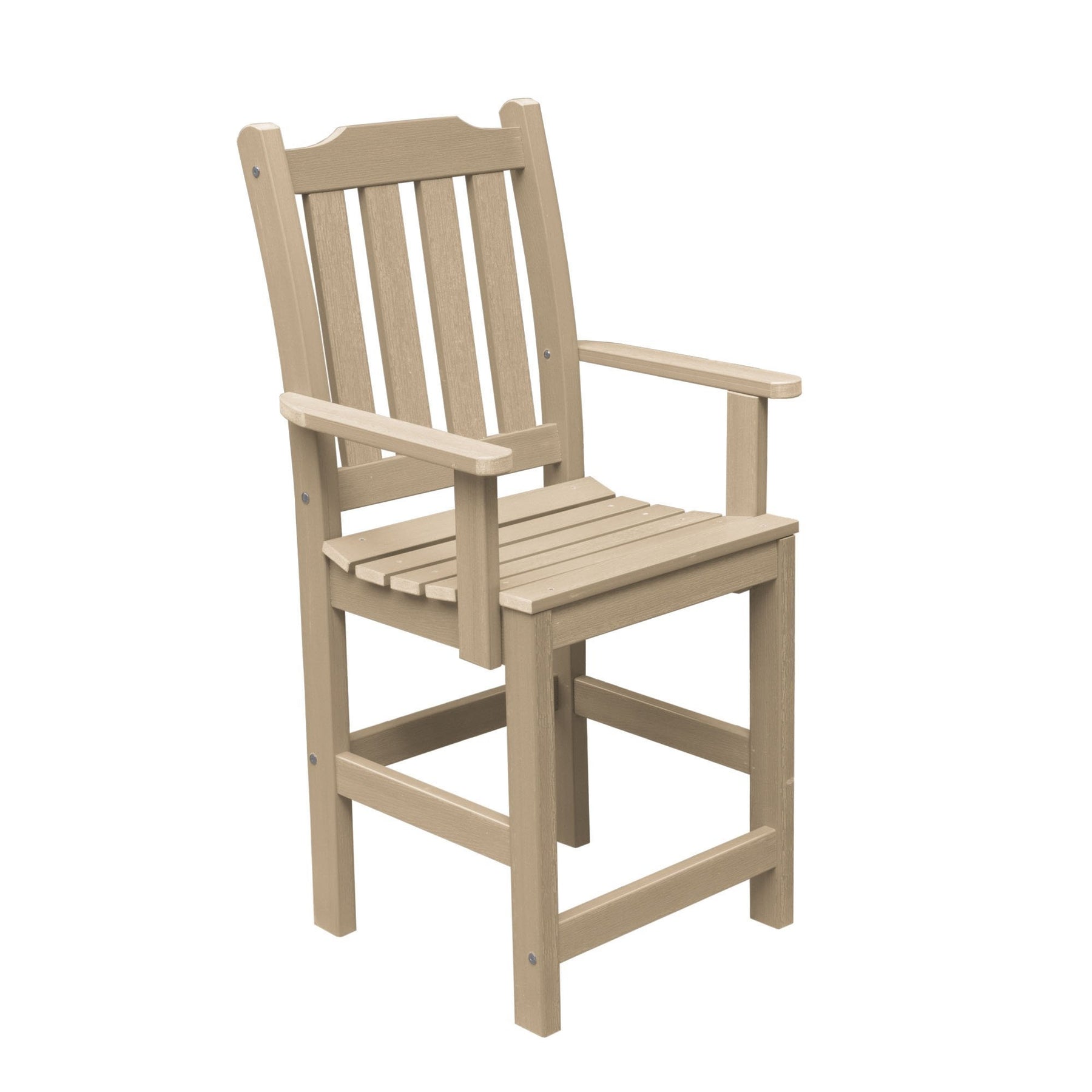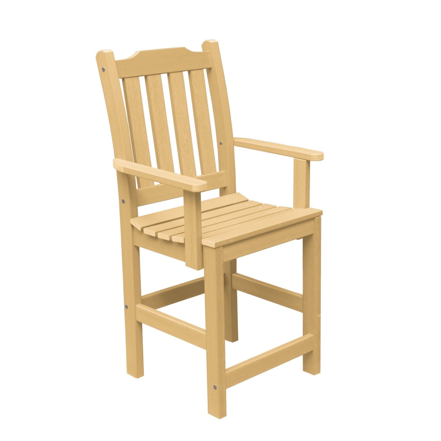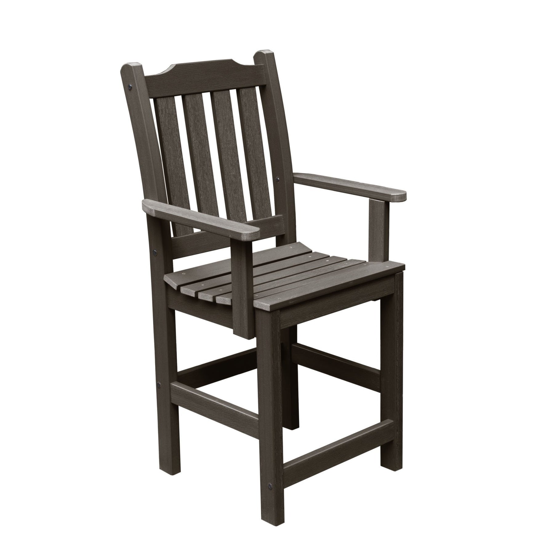 The Lehigh Counter Height Arm Chair takes its design cues from the broader Lehigh Collection. Elegant and traditional lines create an impressive look that complements any of our impressive table options. The vertical seatback slats are both refined and classical. In addition to dining in style, our material is friendly to dirt and grime so clean up is a breeze. Assembly is required (see assembly guide). Just a few reasons why we think you will agree that highwood® products are the best choice for your family: