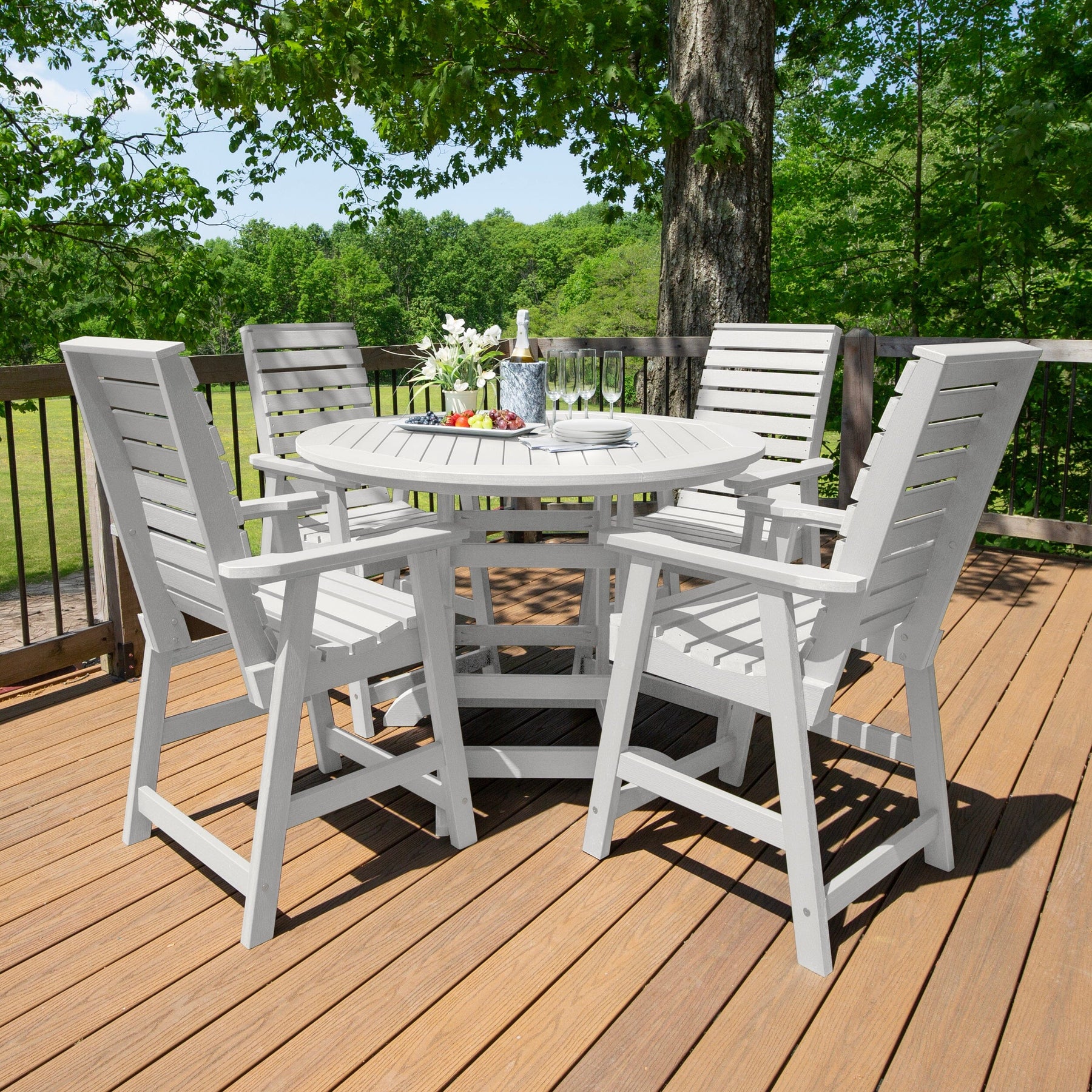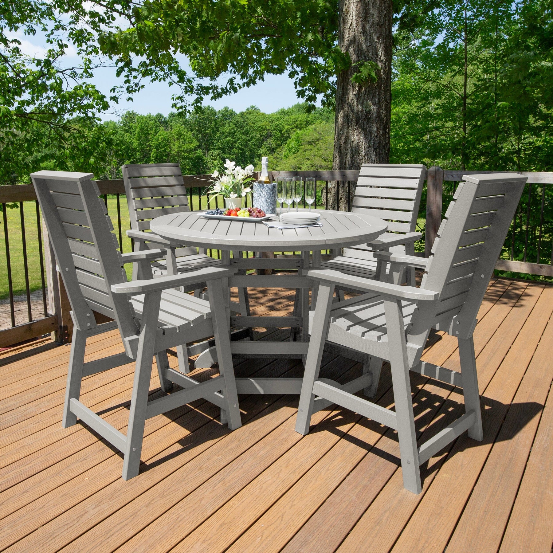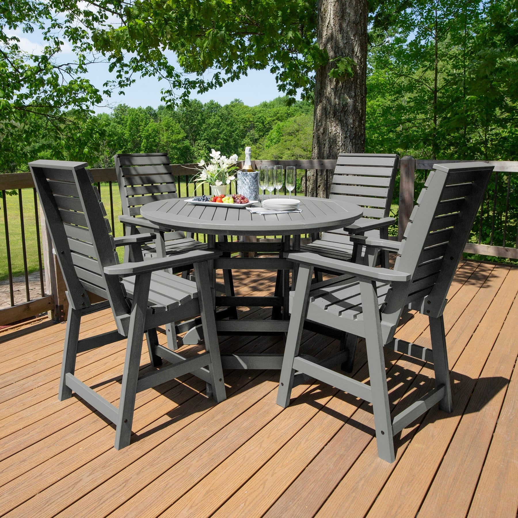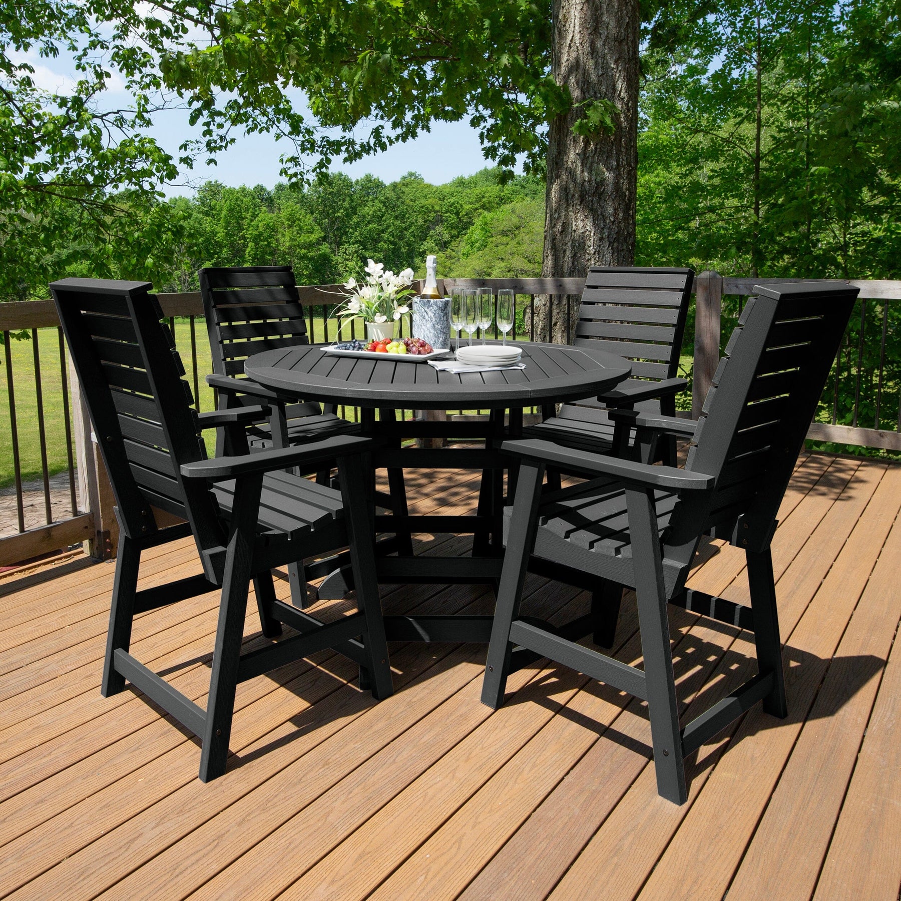Highwood’s outdoor dining sets are 100% made in the USA, so you can truly host an all-American barbeque. Your family and friends will love the comfy and beautiful design, and since it’s made from high-grade poly lumber, it will last for years.