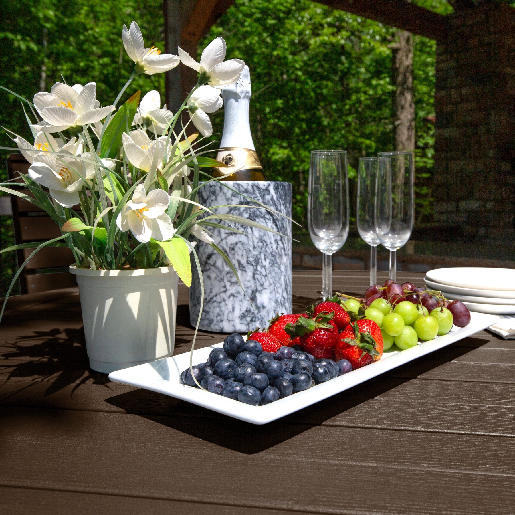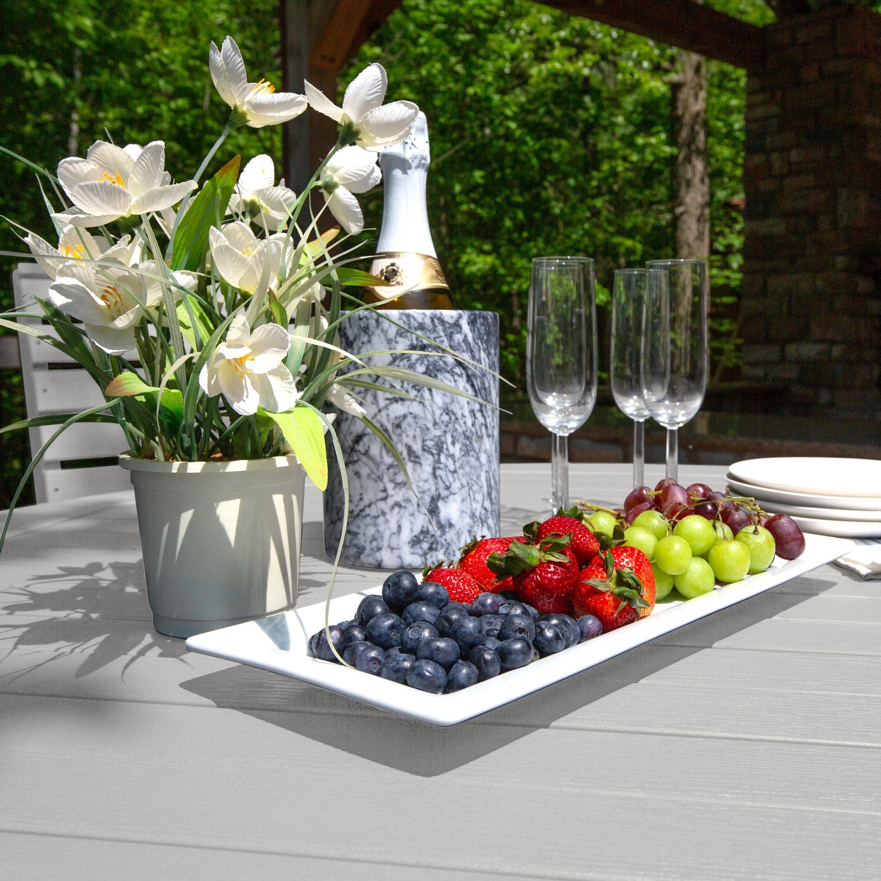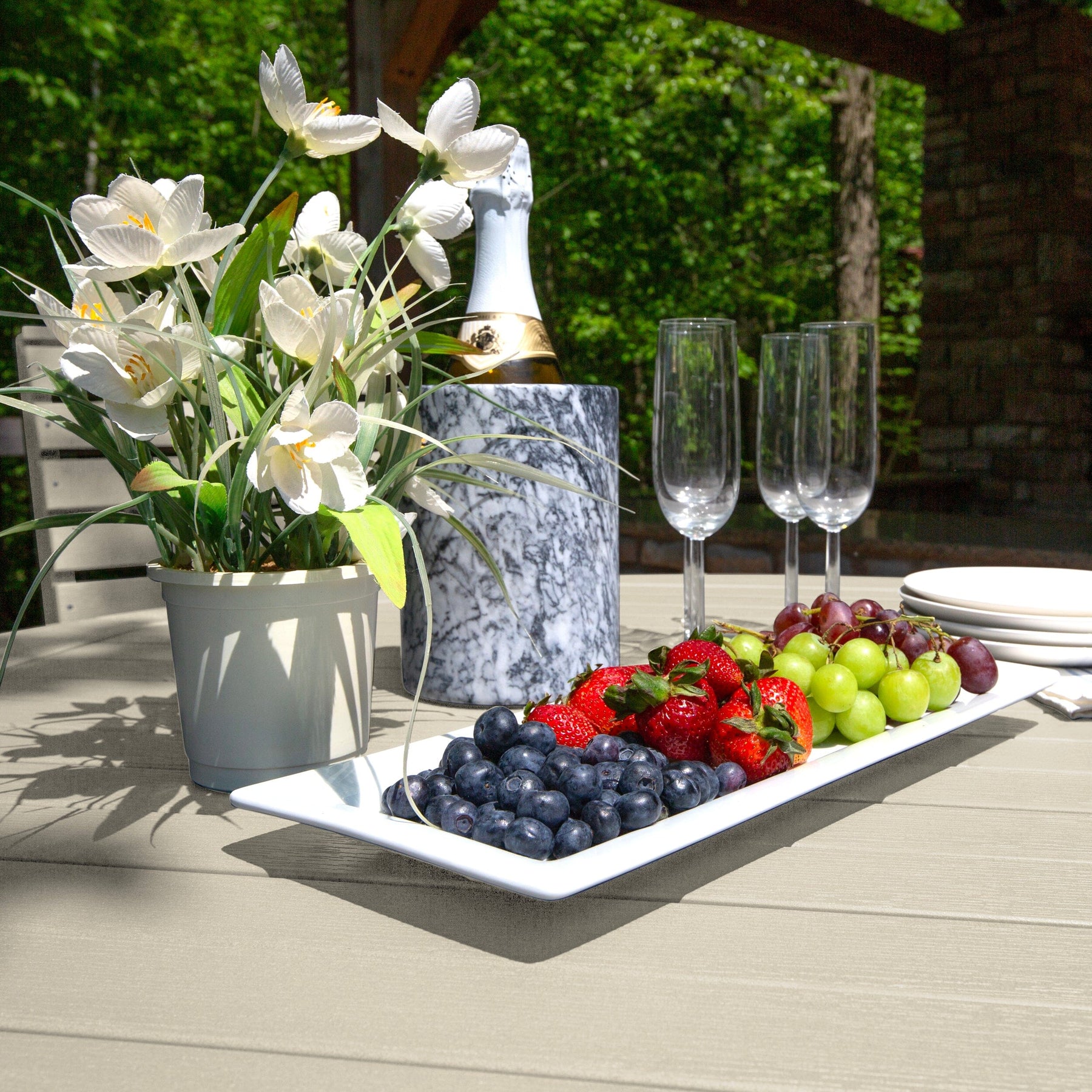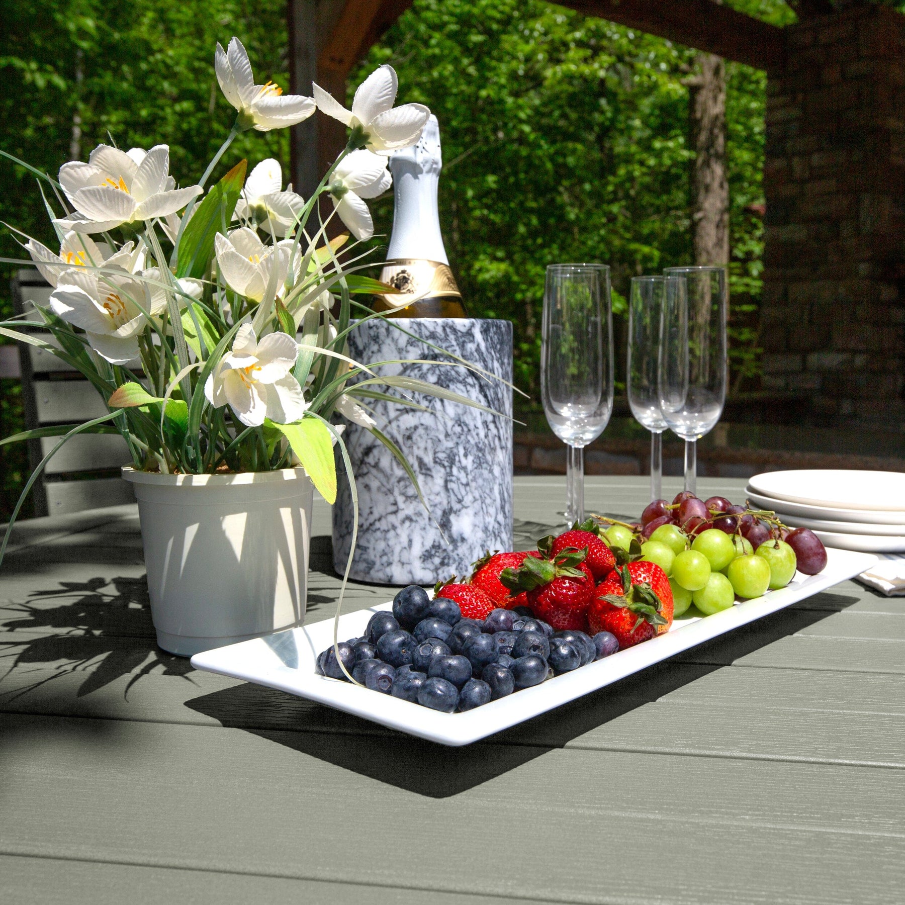 Highwood’s outdoor dining sets are 100% made in the USA, so you can truly host an all-American barbeque. Your family and friends will love the comfy and beautiful design, and since it’s made from high-grade poly lumber, it will last for years.